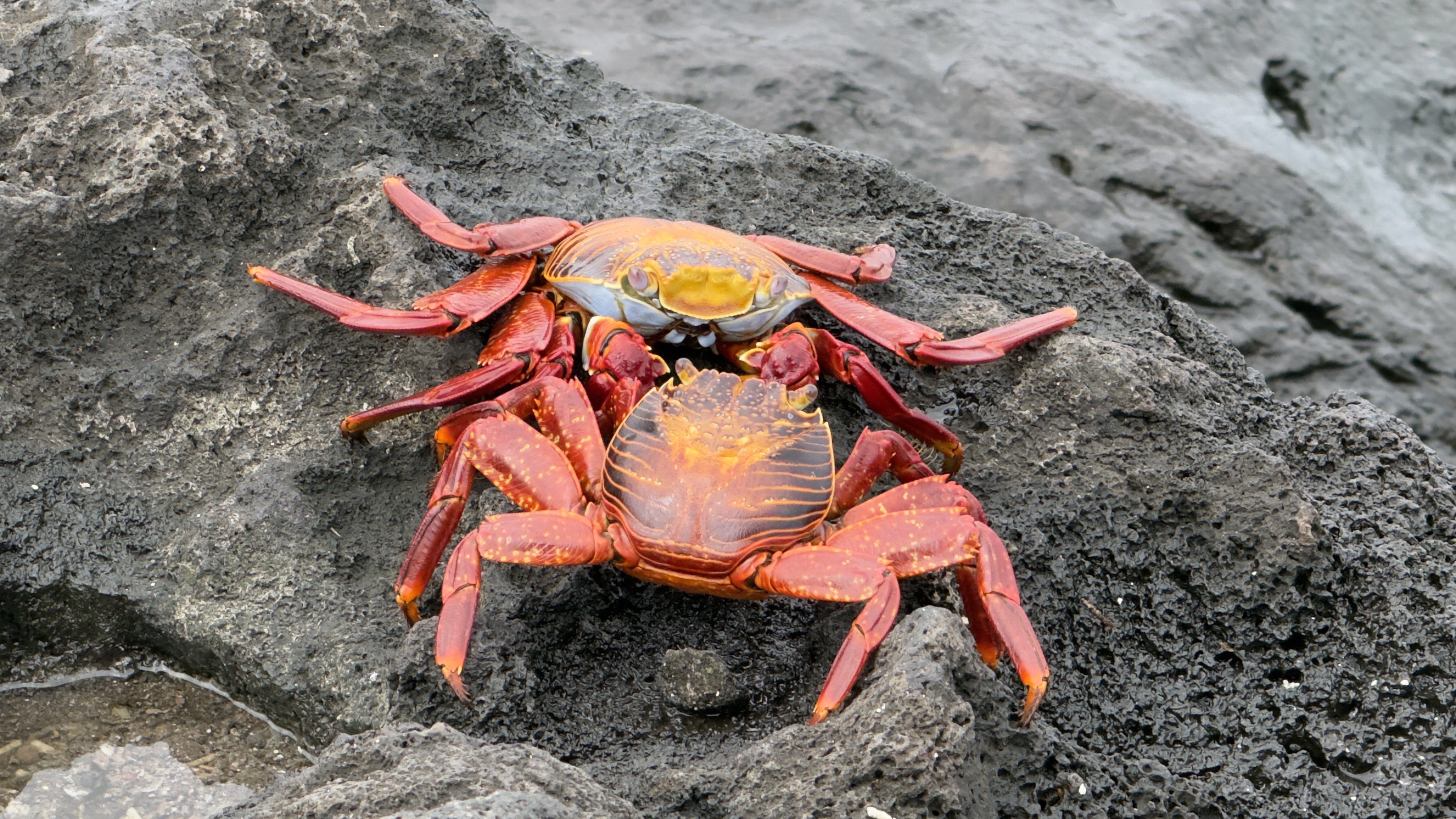 Sally Lightfoot crab attack, San Cristobal Island, Galapagos, Ecuador