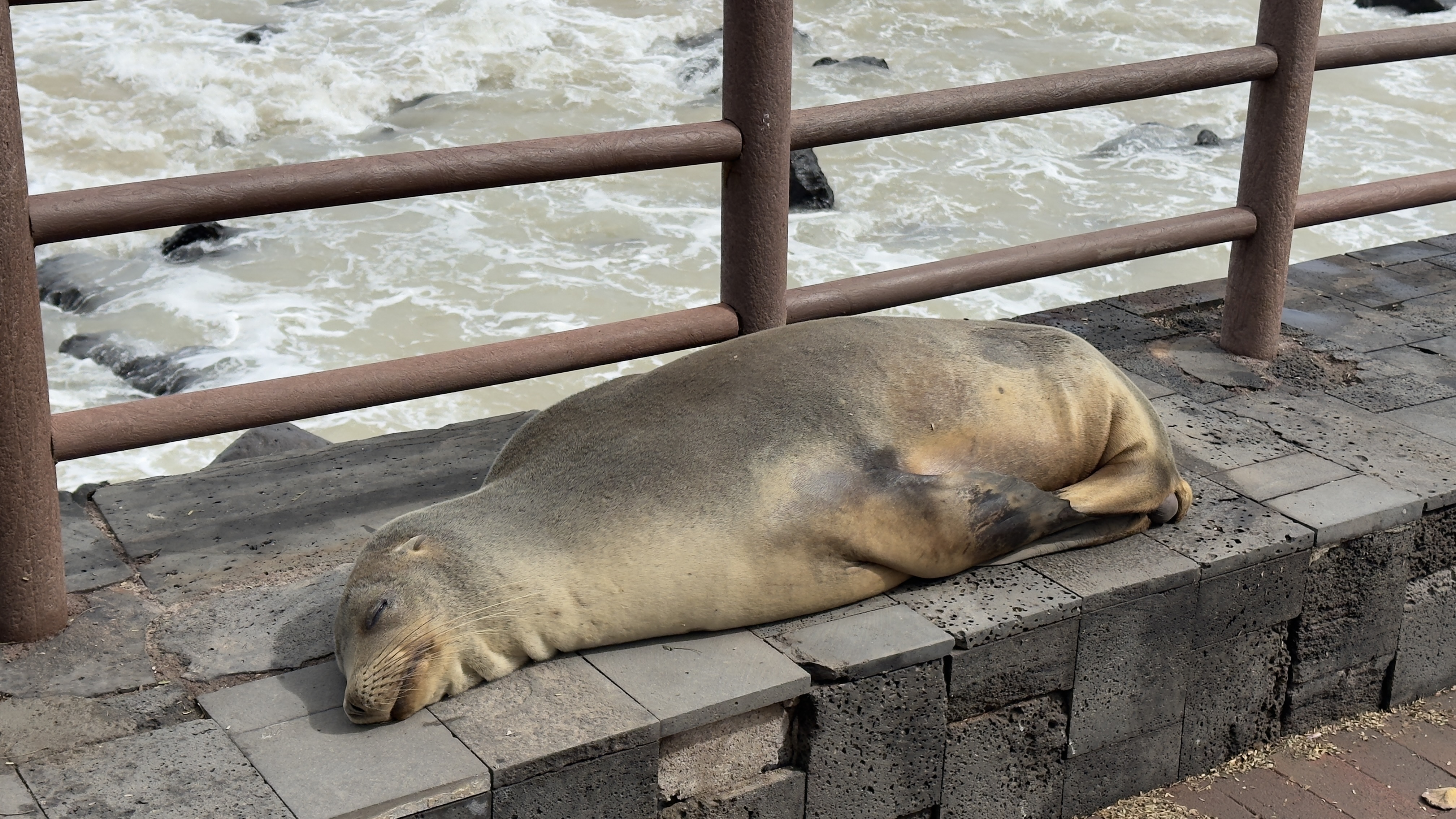 Sea lion on the ledge, San Cristobal Island, Galapagos, Ecuador