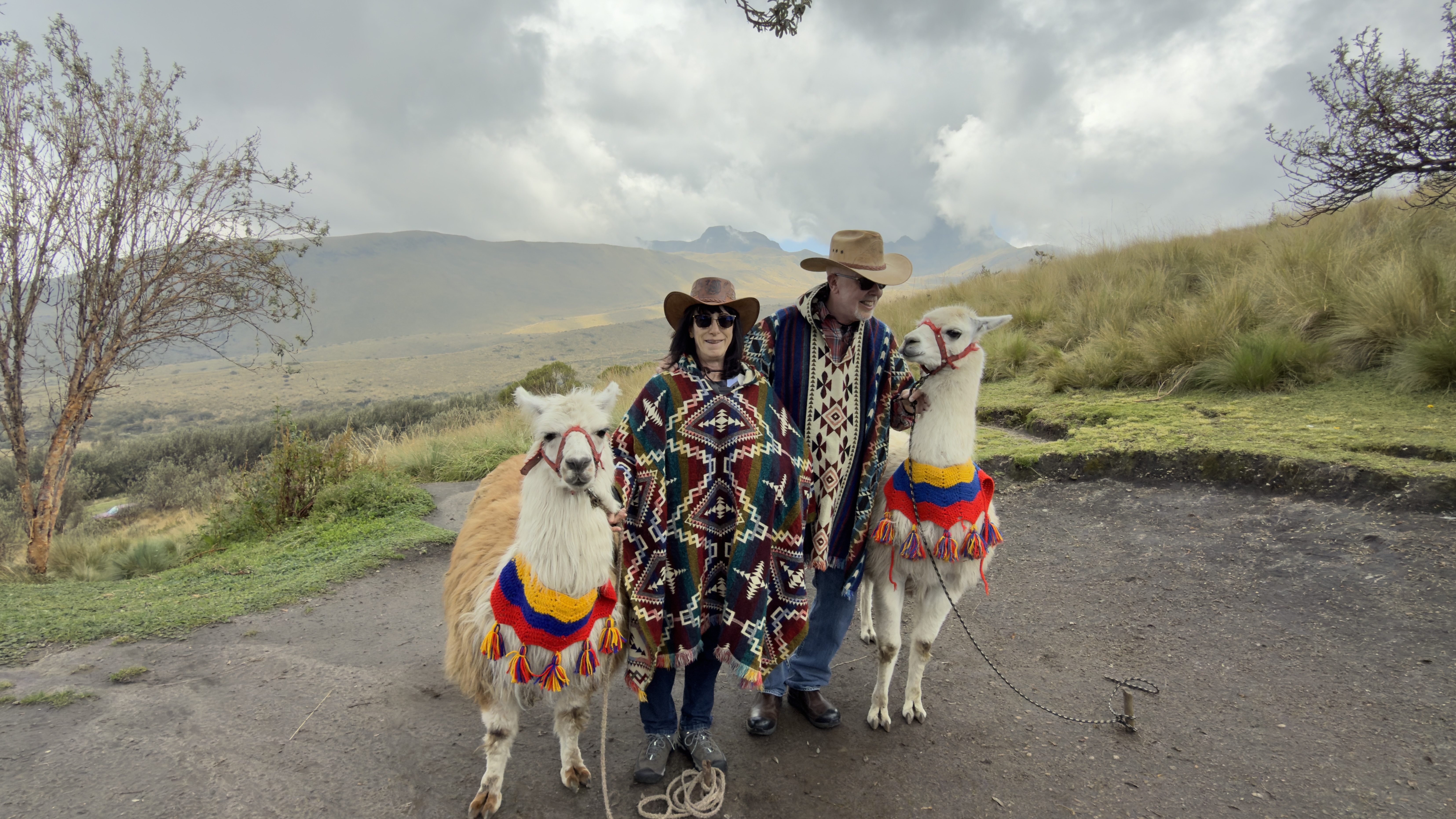 Two llamas, two tourists, Quito, Ecuador