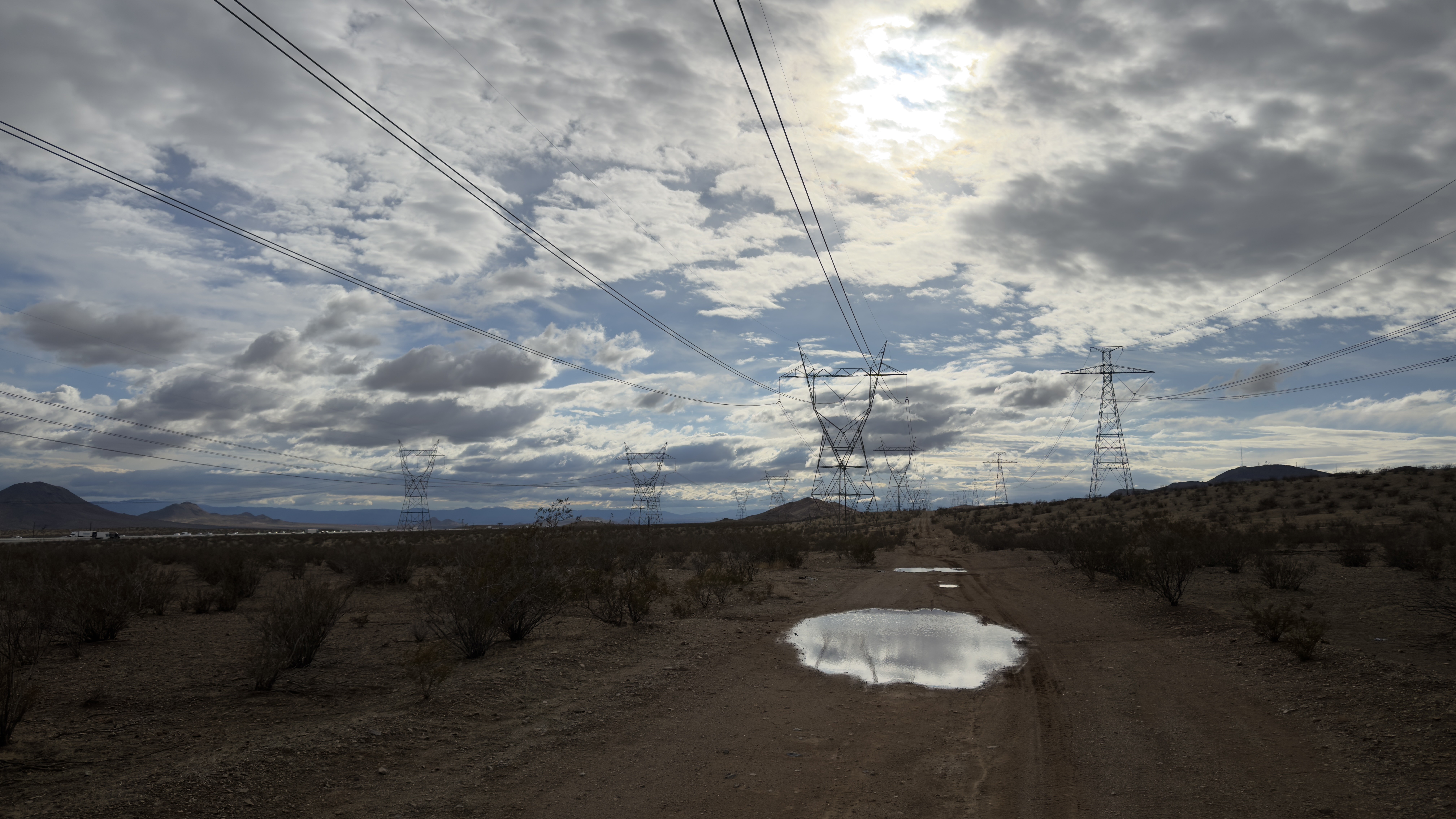 Power line road after a rainstorm, Quartzite, California