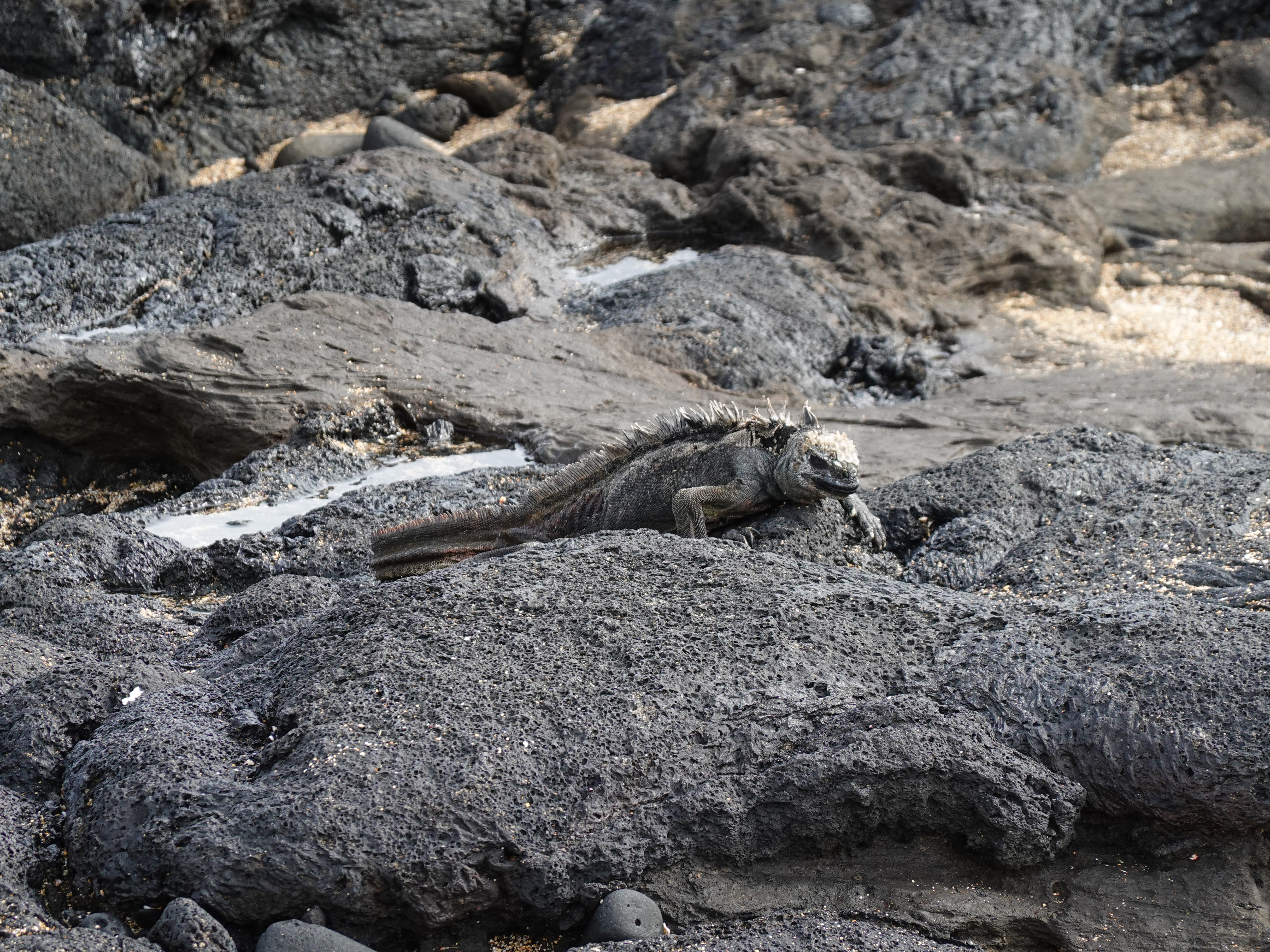 Marine iguana on light rocks, Santiago, Galapagos, Ecuador