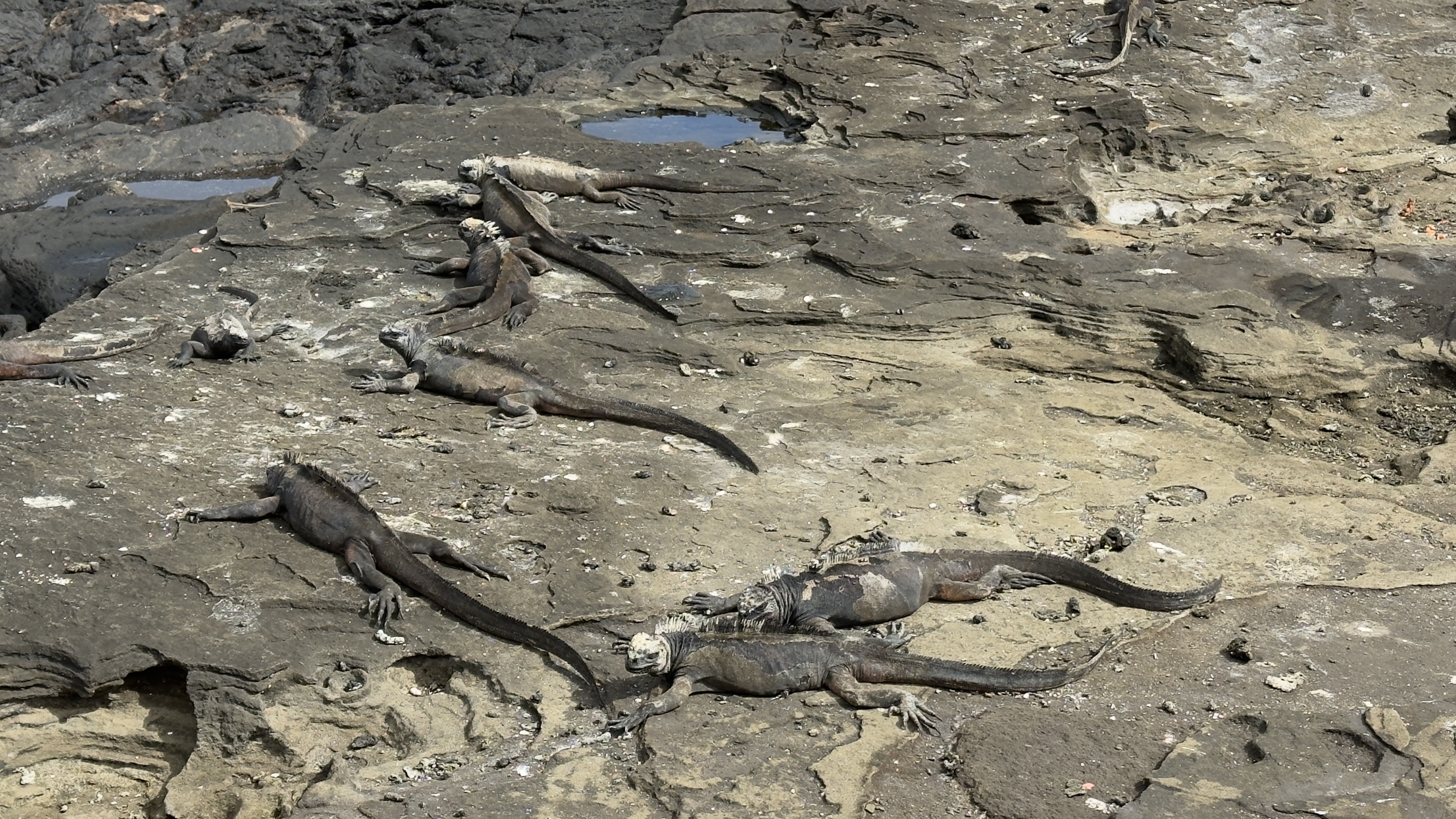 Pod of marine iguanas, Santiago, Galapagos, Ecuador