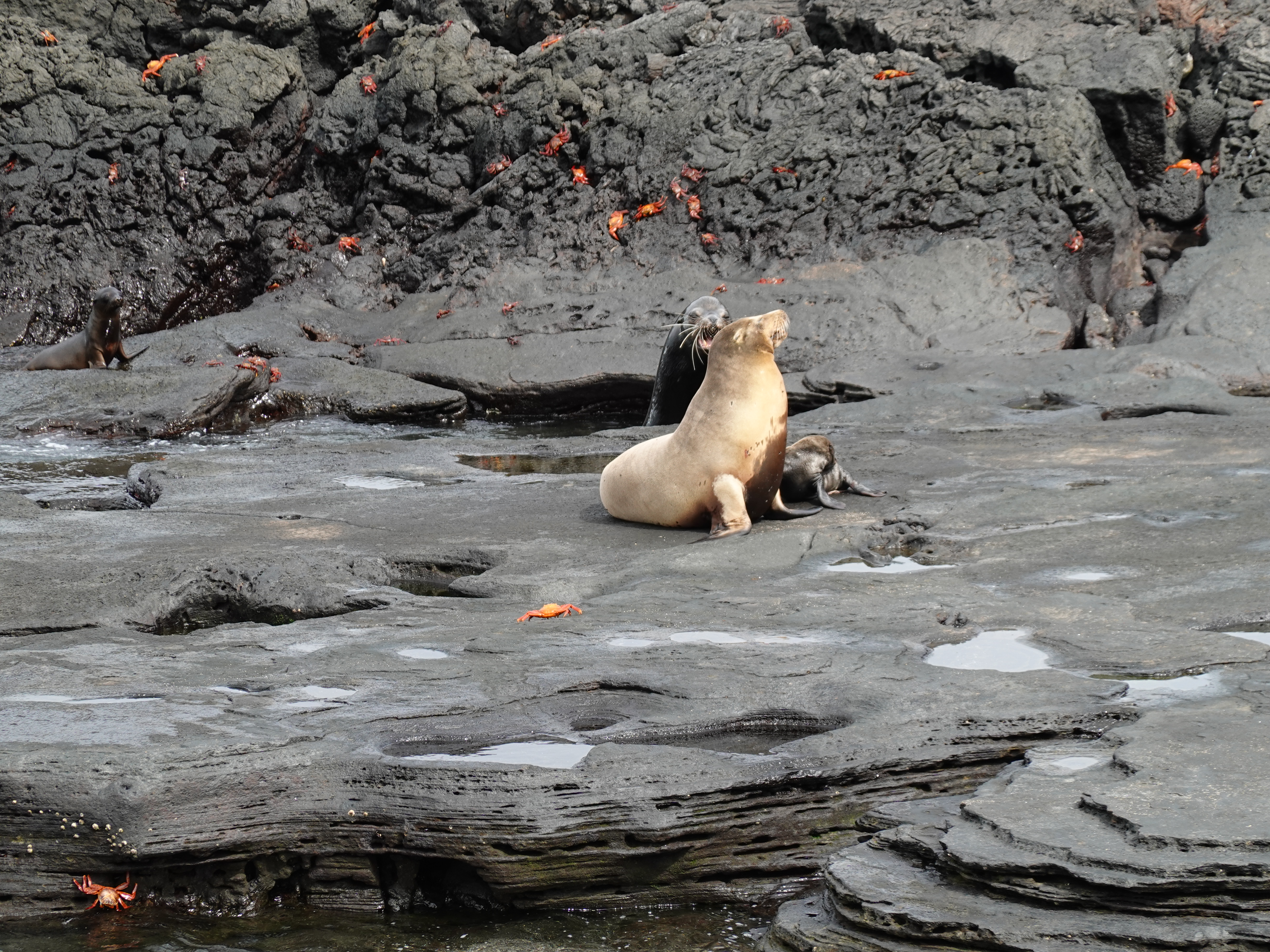 Sea lion family, Santiago, Galapagos, Ecuador