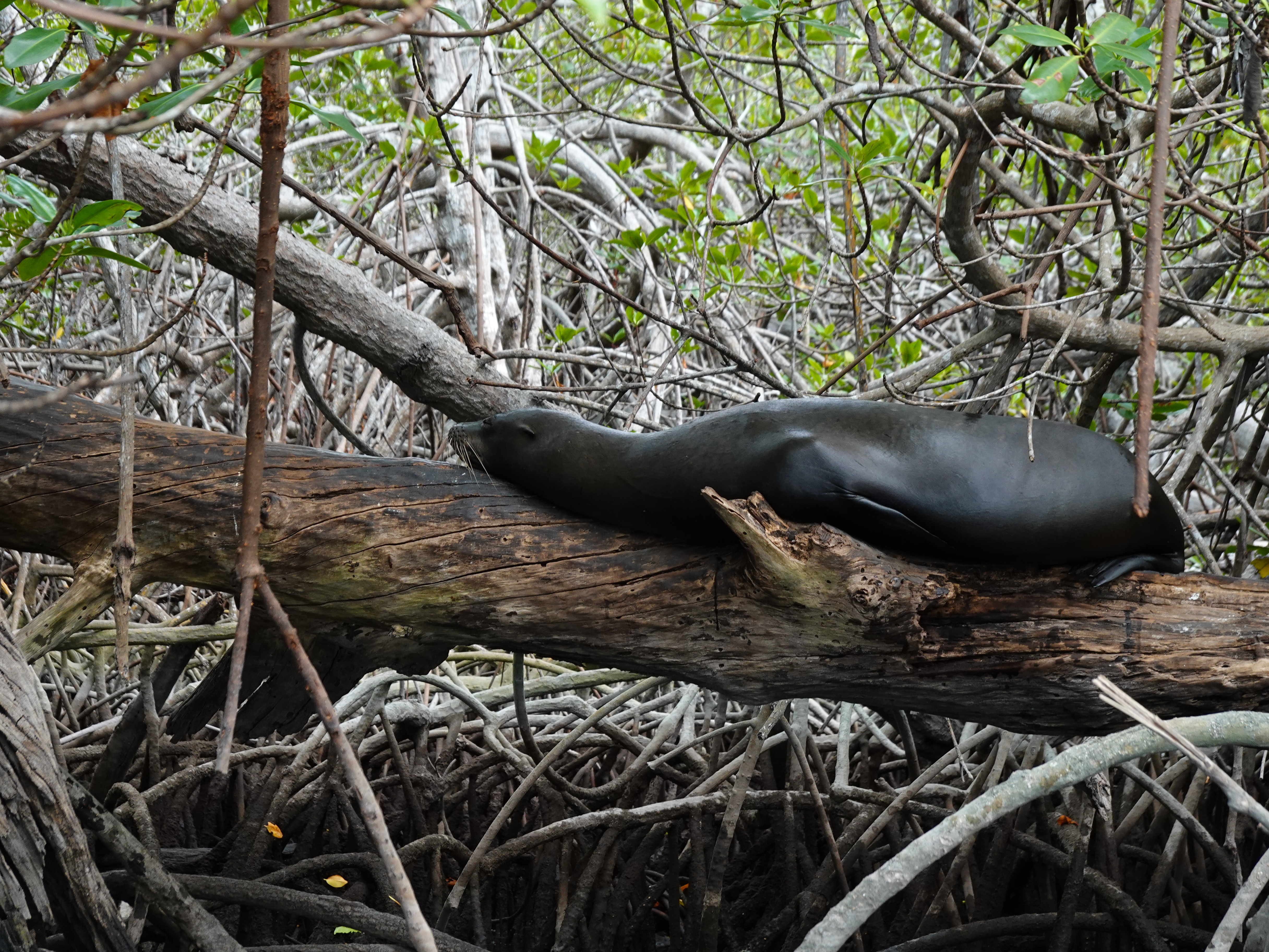 Cownose rays, Isabela , Galapagos archipelago, EcuadorSea lion on a branch, mangrove shoreline, Isabela, Galapagos, Ecuador