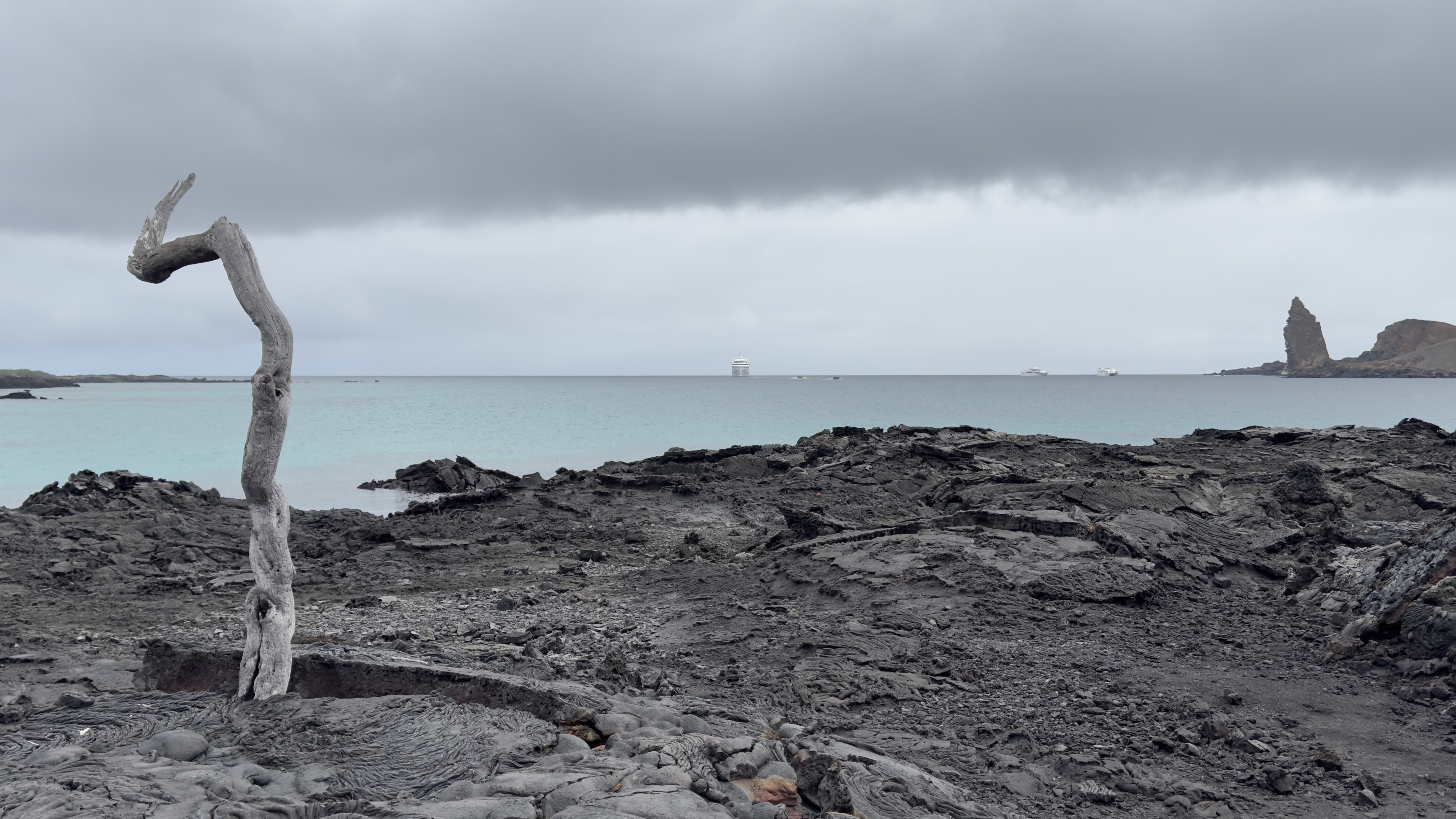 Burned lone tree, lava field, Santiago, Galapagos, Ecuador