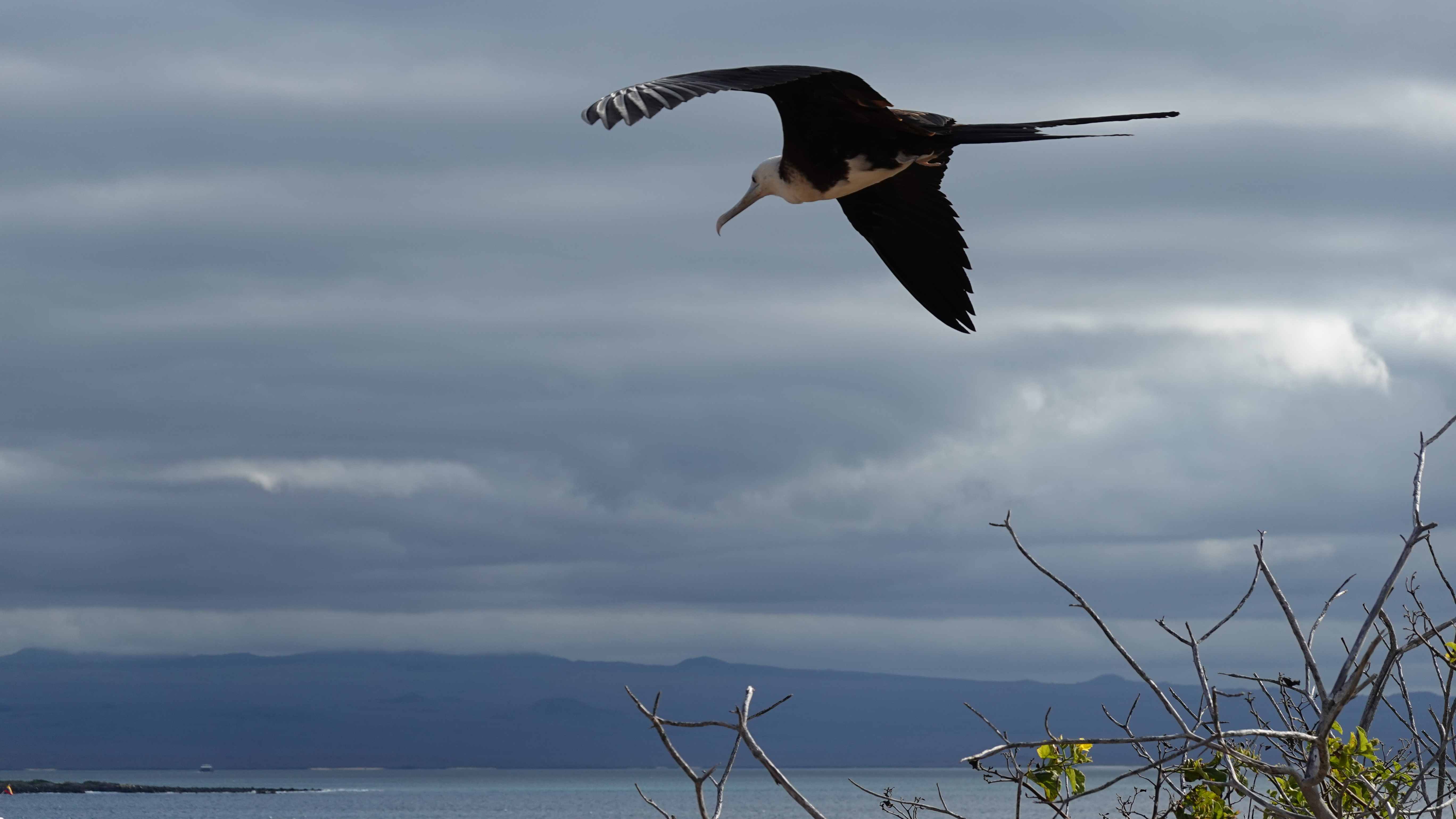 Another Frigate bird in flight, Seymour Norte, Galapagos, Ecuador