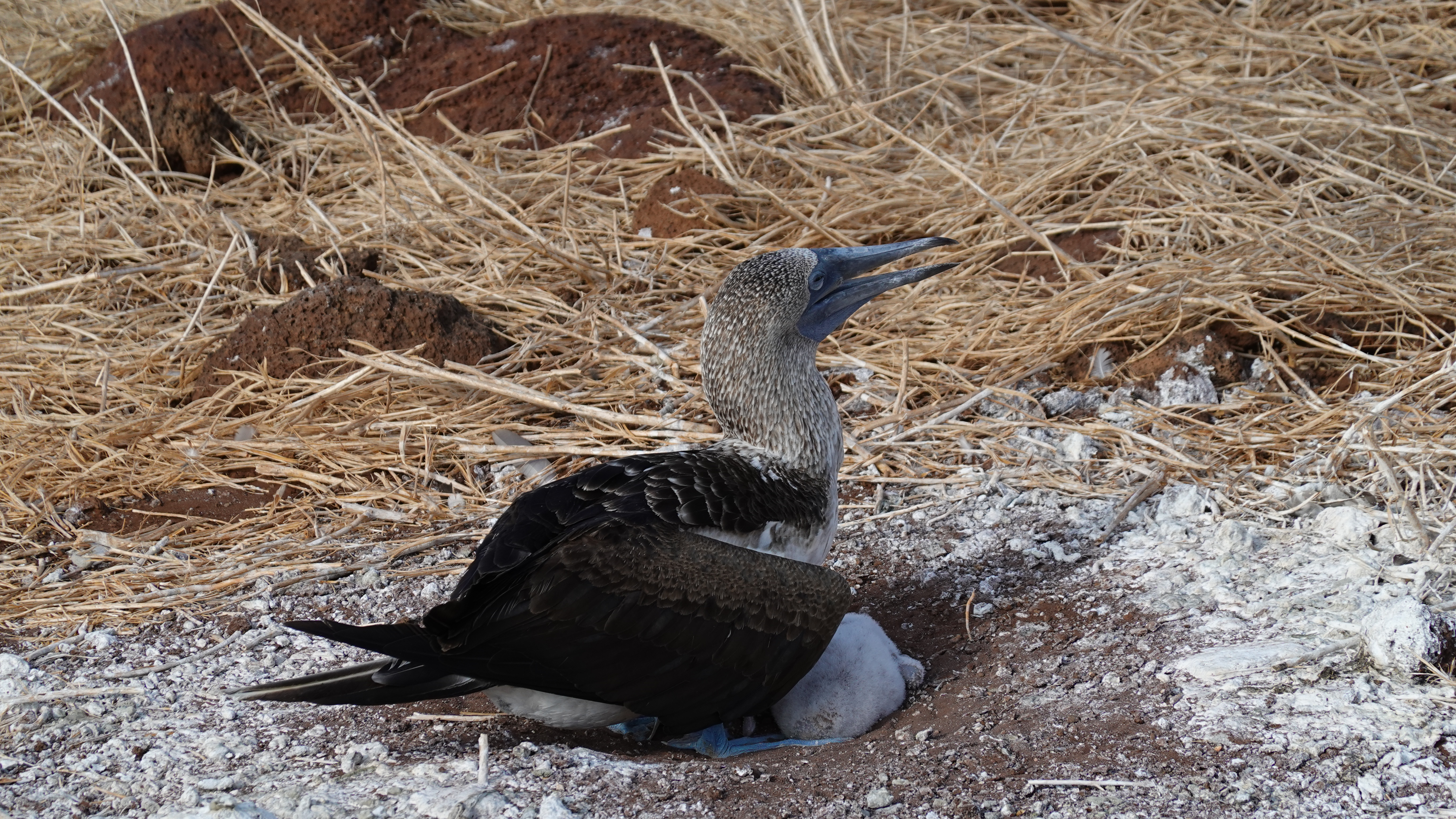 Blue footed booby nest, San Cristobal, Galapagos, Ecuador