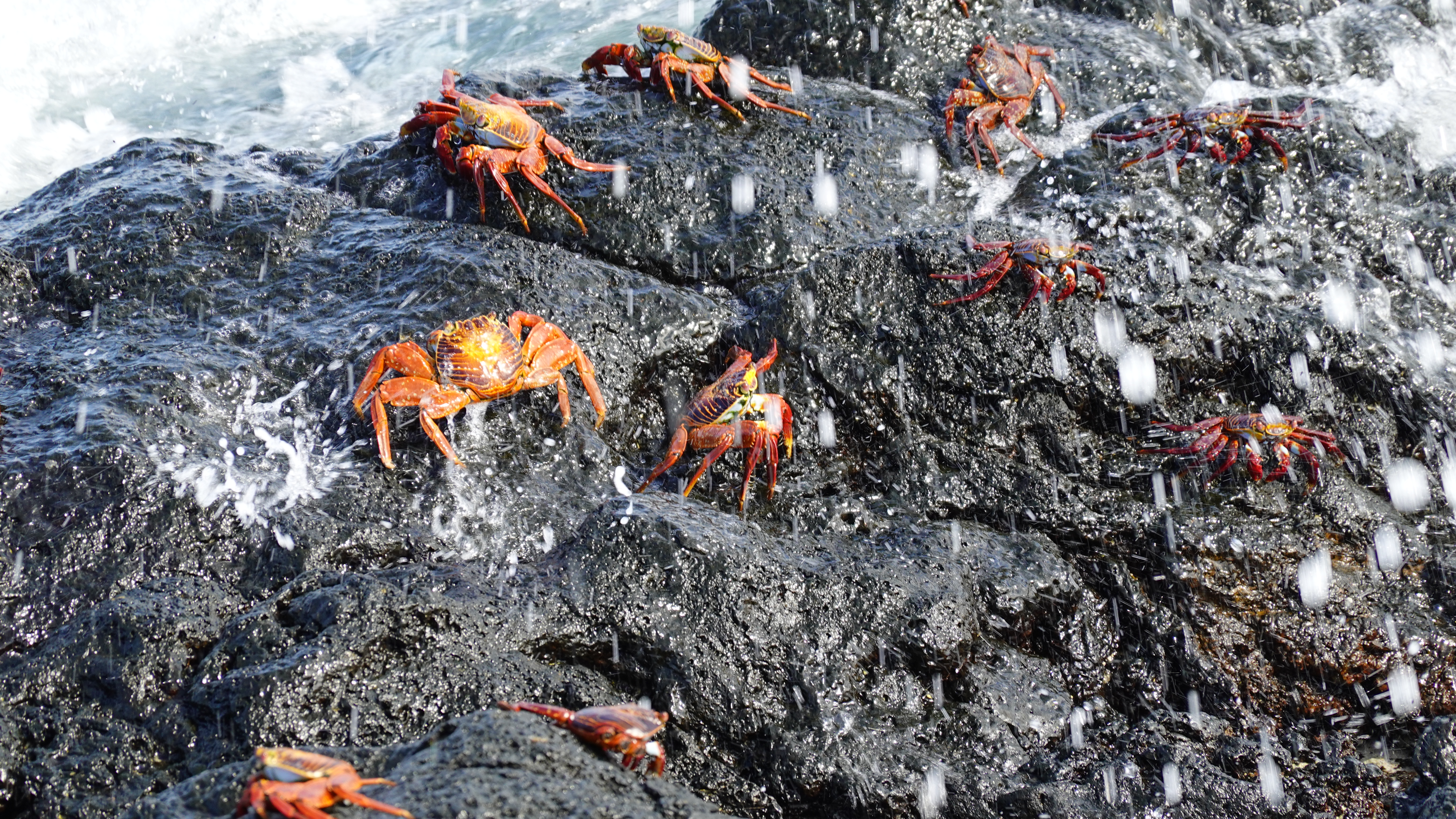 Sally Lightfoot crabs in the surf zone, Black Turtle Cove, Galapagos, Ecuador