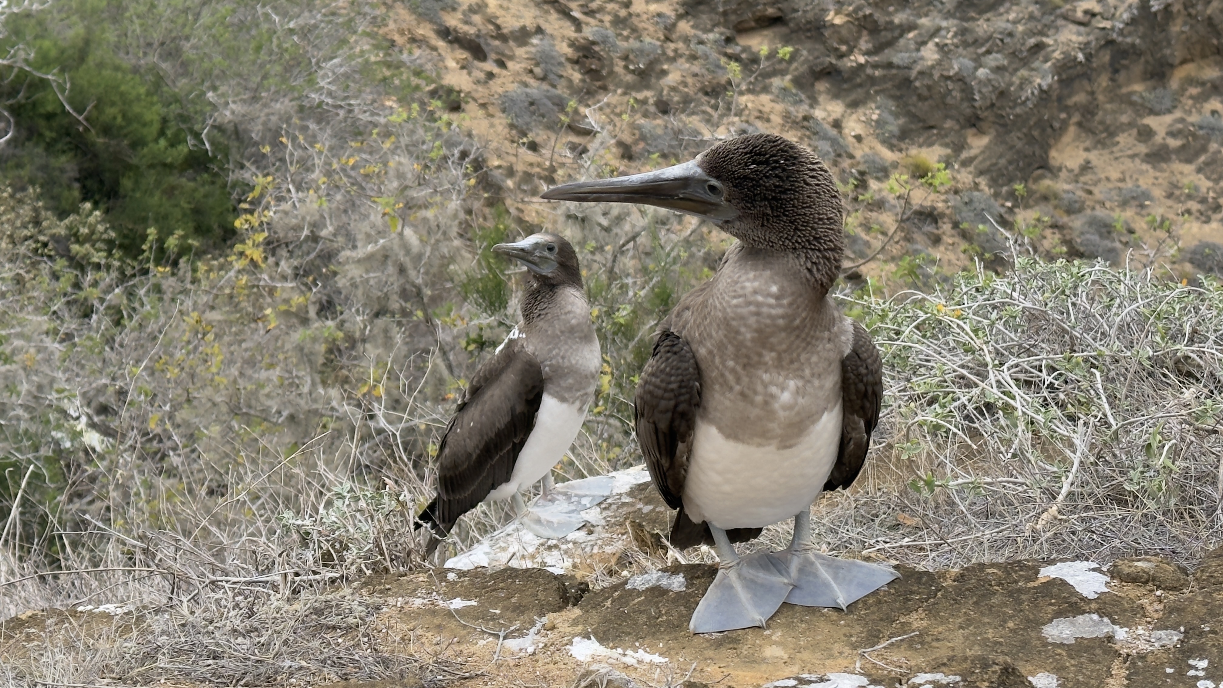 Nest of blue footed boobies, Santiago, Galapagos, Ecuador