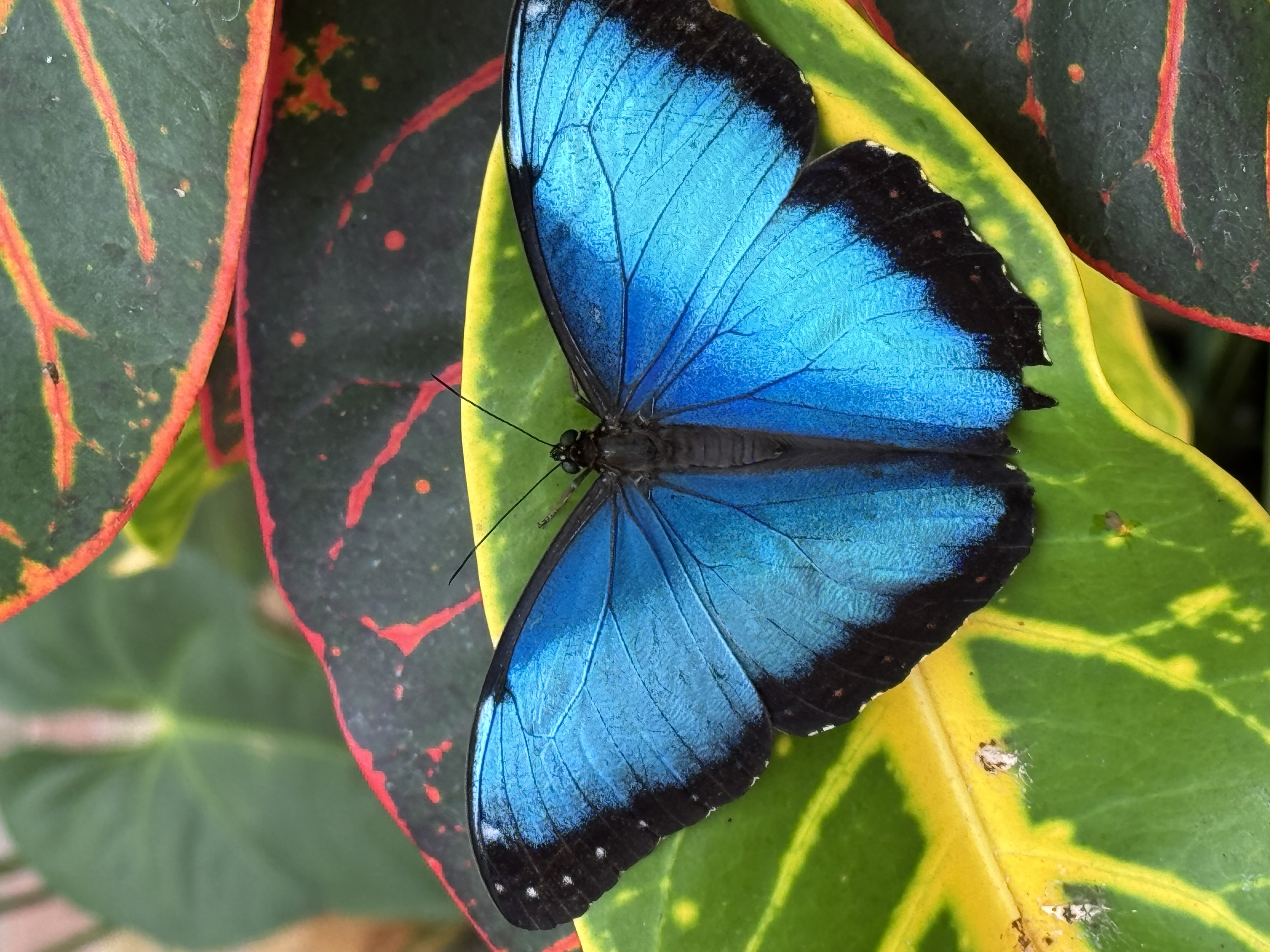 Morpho peleides blue butterfly, Miguel Bancos, Ecuador